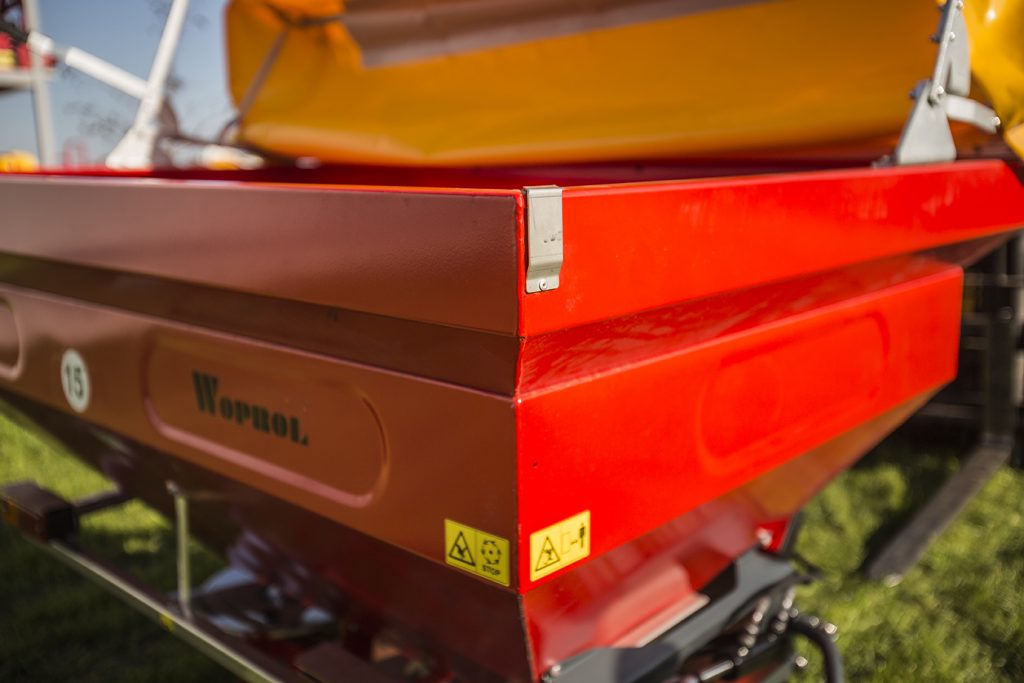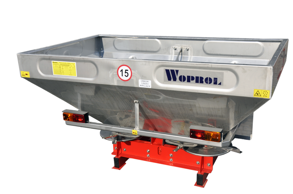 Rozsiewacz nawozów JUNIOR II przeznaczony jest do równomiernego rozsiania nawozu granulowanego na zadaną szerokość roboczą. Mocowany na trzypunktowym układzie podnośnika hydraulicznego ciągnika. Maszyna ta wyposażona jest w dwie tarczę wysiewająca. Konstrukcja wykonana jest z metalu pokrytego wytrzymałą farbą, cały mechanizm wysiewający (talerz, łopatki, osłona) wykonany jest ze stali nierdzewnej kwasoodpornej. W standardzie sterowanie hydrauliczne. Otwieranie za pomocą siłownika (prawa-lewa strona) oraz oświetlenie drogowe.
